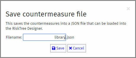 To save your countermeasure library, click on the button. You will be prompted for a filename; when this is entered, click on the Save button and the library file will automatically download to your browser.