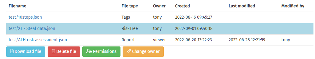 The table below shows the files held in the chosen on-line storage, and to which you have access.