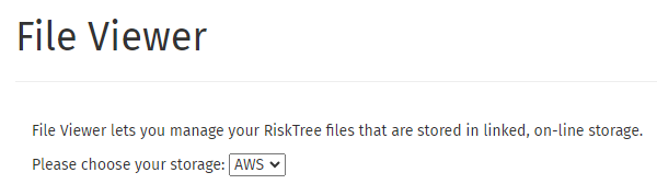 File Viewer lets you view the files you have in your on-line storage. If you have multiple storage options, these are selectable using the drop-down.