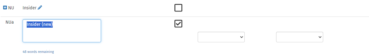 A new threat that is a sub-category of an existing threat can be created by clicking on the button to the left of the threat ID. This will create a new threat row beneath, with the same ID suffixed by a letter. The name will be in 'edit mode', allowing you to immediately set the correct name.